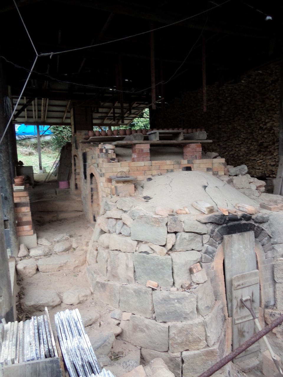 丁度 三代目健太さんが 登り窯で窯入れの作業中でした